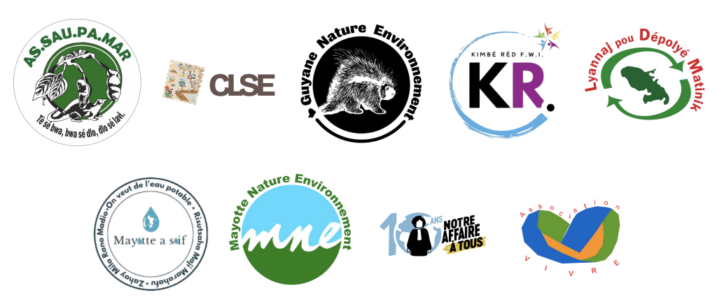Collectifs et associations signataires, dans l’ordre alphabétique : l’ASSAUPAMAR (Martinique), le Collectif des luttes sociales et environnementales, Guyane Nature Environnement, Kimbé Rèd F.W.I. (Antilles), Lyannaj pou dépolyé Matinik, Mayotte a soif, Mayotte Nature Environnement, Notre Affaire à Tous, l’association VIVRE (Guadeloupe).