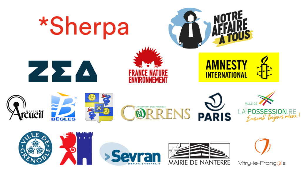 Signataires : Notre Affaire à Tous, Sherpa, France Nature Environnement, ZEA, Amnesty International France et les villes de Paris, Arcueil, Bègles, Bize-Minervois, Correns, Grenoble, La Possession, Mouans-Sartoux, Nanterre, Sevran, Vitry-le-François