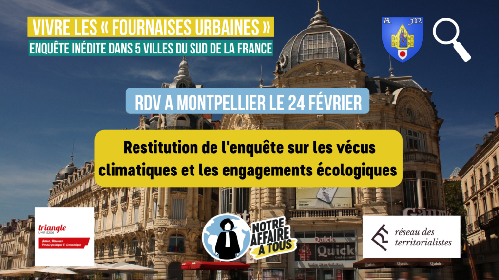 Le 24 février, à Montpellier, venez rencontrer les chercheurs, doctorants et l’association Notre Affaire à Tous et discuter des attentes face aux inactions politiques et activités polluantes qui dégradent la vie en milieu urbain ! Plus d’informations sur l’événement Facebook