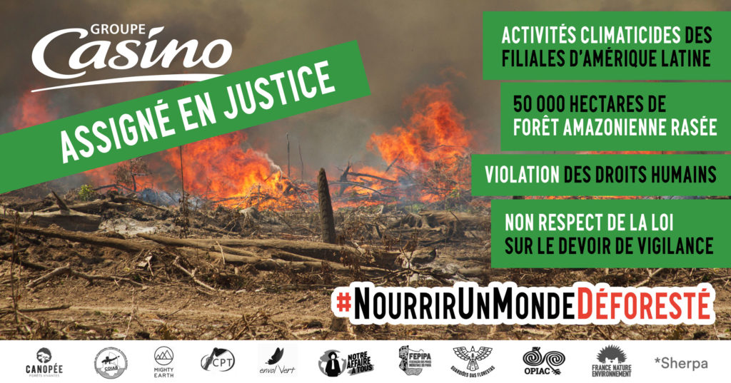 Paris, le 9 juin 2022 – Aujourd’hui s’ouvre la première audience de l’action en justice engagée contre le groupe Casino pour manquement à son devoir de vigilance dans son approvisionnement en viande bovine au Brésil et en Colombie, au détriment de la forêt amazonienne et des peuples autochtones. Cette première audience doit déterminer le calendrier d’instruction. Les représentants des peuples autochtones du Brésil (Articulation des Peuples Indigènes du Brésil, APIB), sont à Paris pour exprimer devant le tribunal la nécessité que ce calendrier soit à la hauteur des enjeux et de l’urgence constatée sur le terrain : la situation est catastrophique au Brésil avec des taux de déforestation et de feux inégalés depuis 18 ans1.