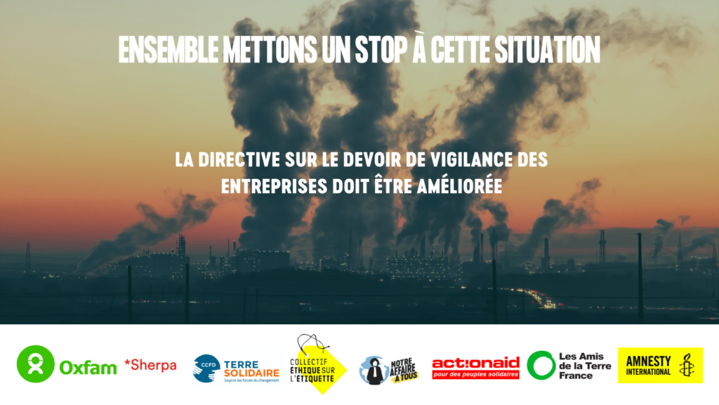 Après de longs mois d’attente, il revient désormais au Parlement européen et aux Etats membres d’amender la proposition de la Commission et de négocier le texte. Nos organisations continueront de se mobiliser pour que les dispositions finales de la directive permettent de mettre fin à l’impunité des multinationales et facilitent l’accès à la justice pour les personnes affectées.
