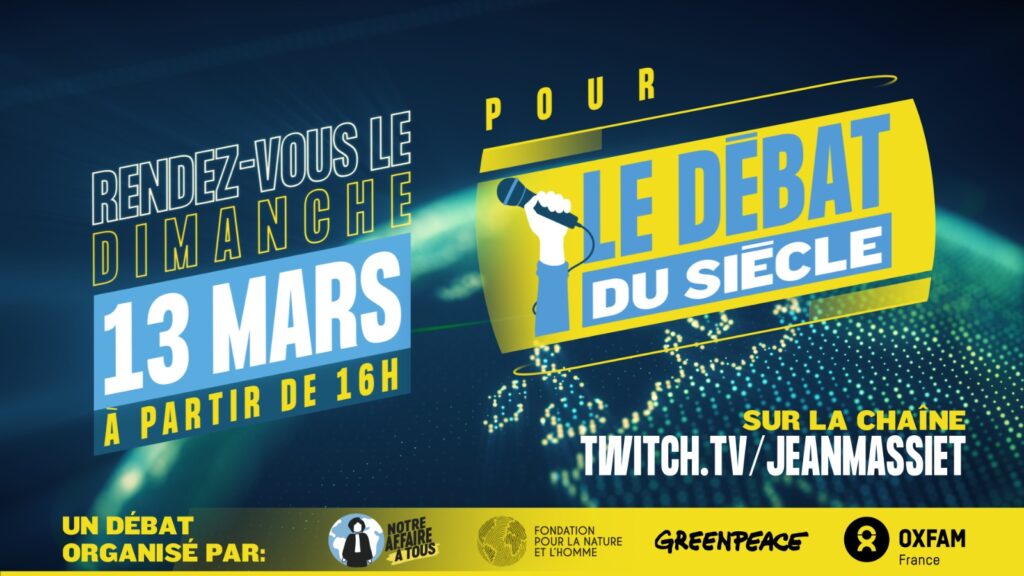 A J-3 du “Débat du Siècle” organisé ce dimanche 13 mars sur la chaîne Twitch du streamer politique Jean Massiet et à J-2 de la grande marche “Look Up” pour le climat, les organisations de l’Affaire du Siècle regrettent l’absence de confirmation de Valérie Pécresse, Jean-Luc Mélenchon et Emmanuel Macron. Ils doivent venir parler urgence écologique et solutions devant les Français·es. Anne Hidalgo, Yannick Jadot, Fabien Roussel et Philippe Poutou ont déjà confirmé leur participation. La réponse d’Emmanuel Macron reste en attente.