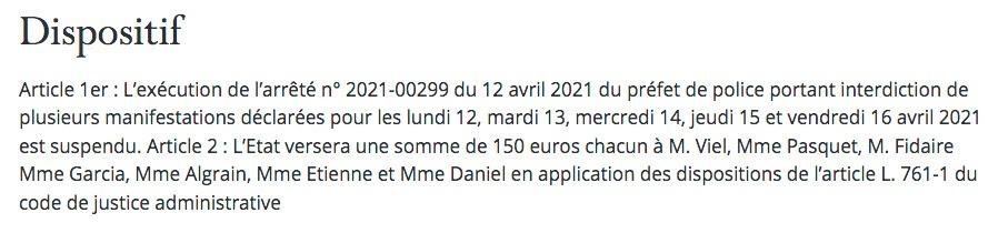 Les 7 et 12 avril 2021, les mobilisations pour une “vraie loi climat” initiées par des jeunes place Herriot pour rencontrer les député.e.s ont été interdites par la préfecture de police de Paris. Leur premier recours (référé liberté), déposé par l’association Notre Affaire à Tous auprès du Tribunal Administratif de Paris, a été rejeté sans que le motif du refus soit explicité. Après la seconde interdiction de rassemblement, ils avaient déposé un second référé le 12 avril.