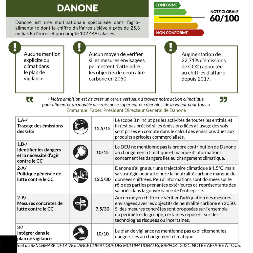 Danone se classe à la vingt-cinquième place de notre classement sur la vigilance climatique des multinationales françaises.