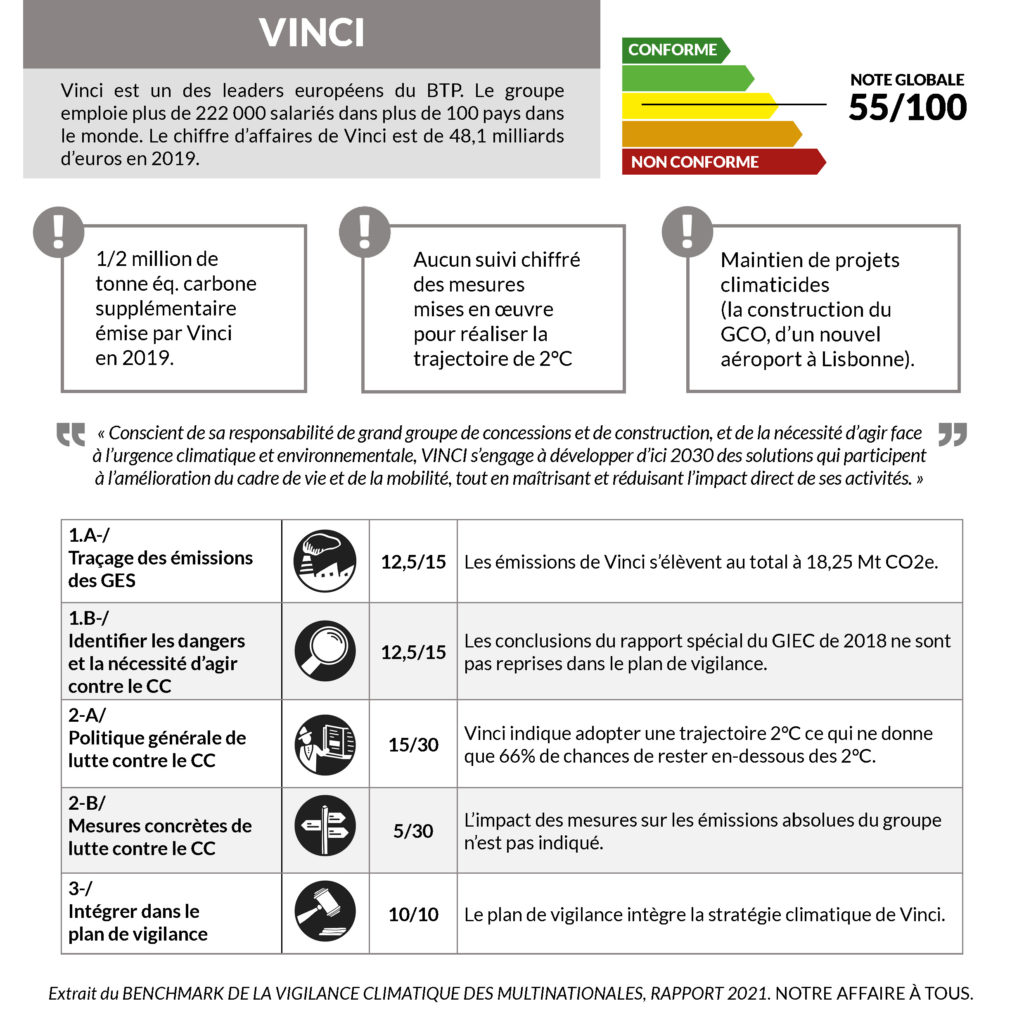Vinci se classe à la dix-neuvième place de notre classement sur la vigilance climatique des multinationales françaises.