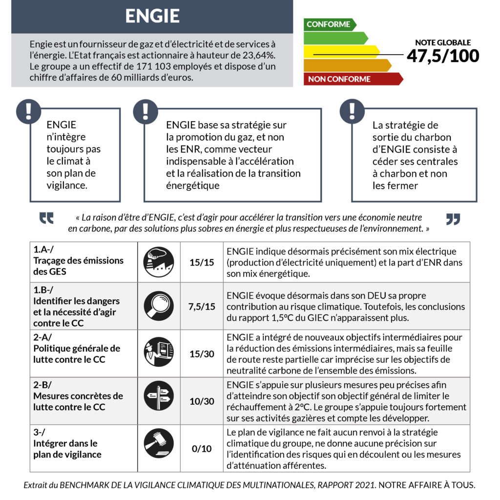Engie se classe à la dix-septième place de notre classement sur la vigilance climatique des multinationales françaises.