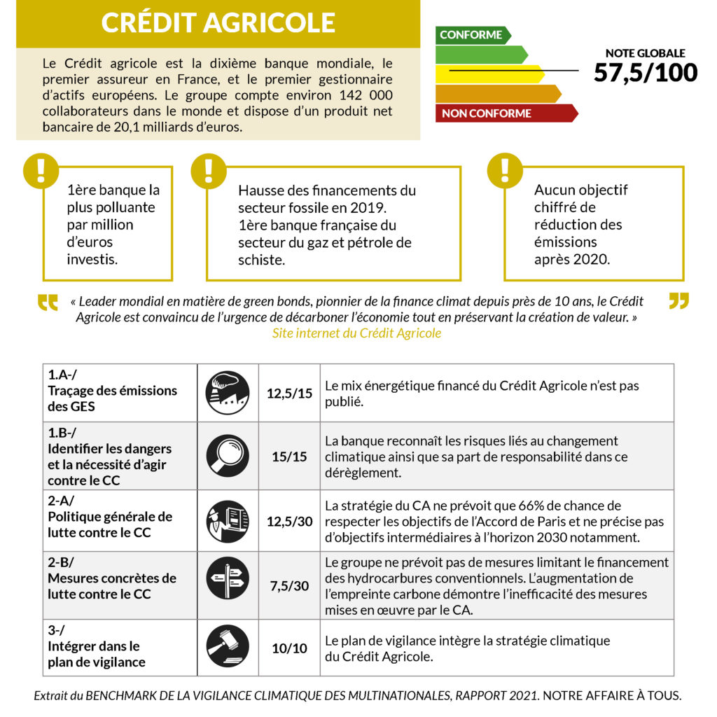Crédit Agricole se classe à la vingt-troisième place de notre classement sur la vigilance climatique des multinationales françaises.