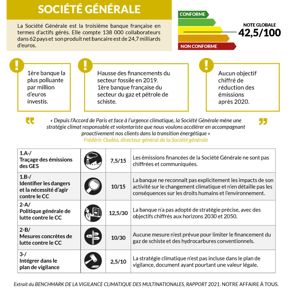 La Société Générale se classe à la treizième place de notre classement sur la vigilance climatique des multinationales françaises.