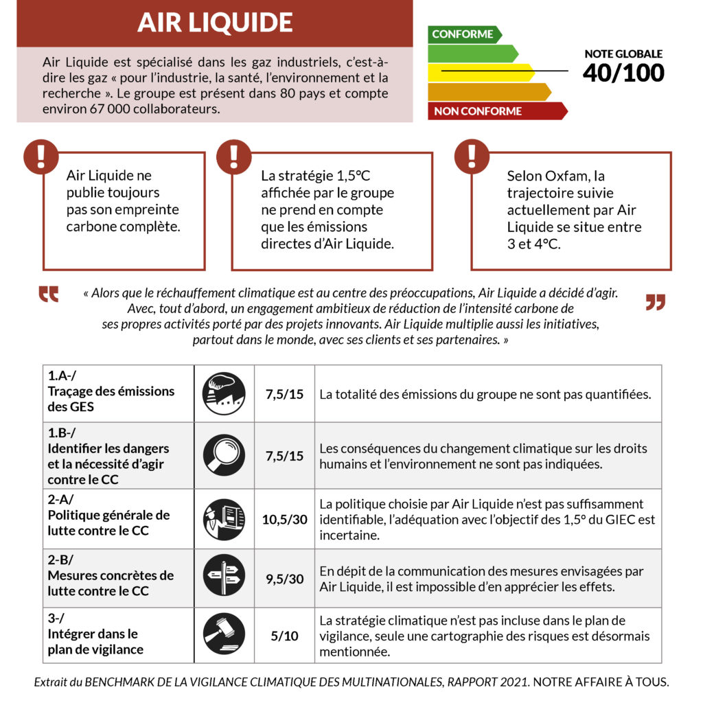 Air Liquide se classe à la onzième place de notre classement sur la vigilance climatique des multinationales françaises.