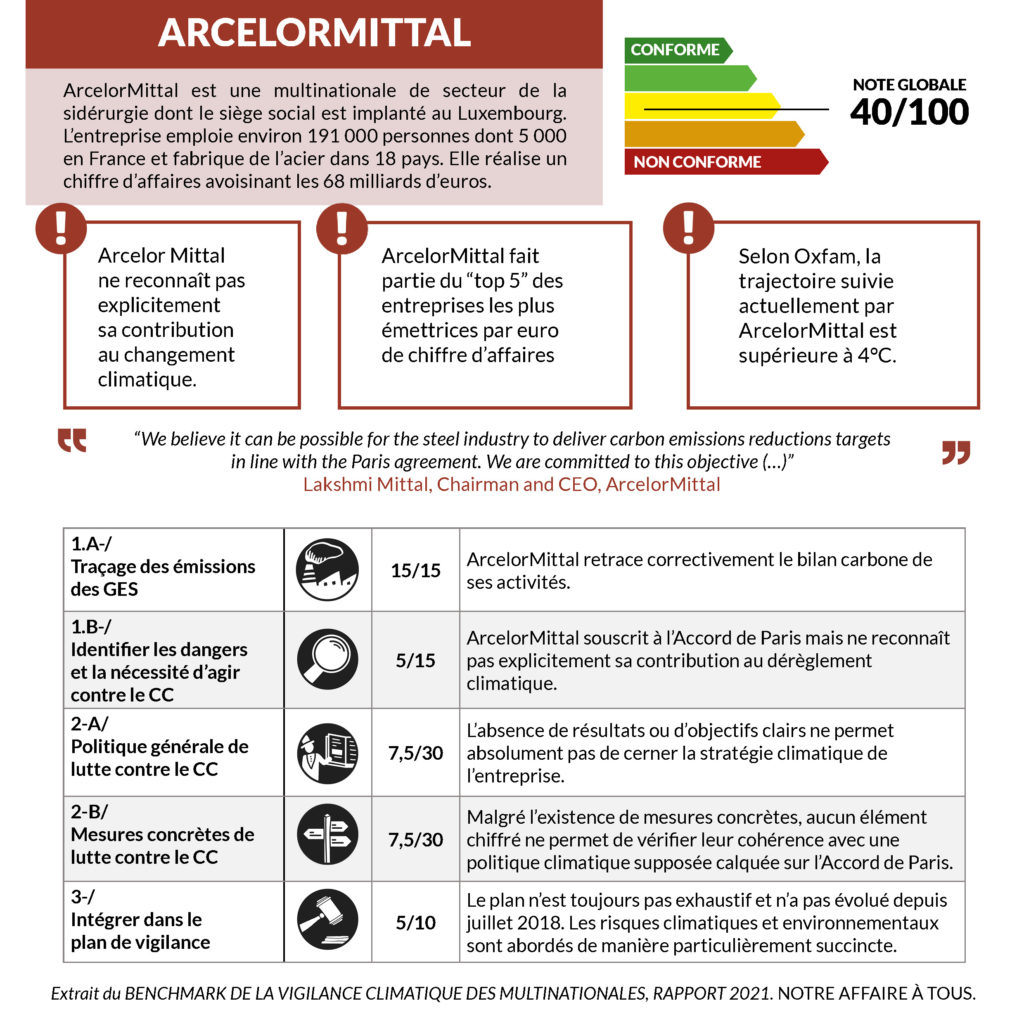 ArcelorMittal se classe à la dixième place de notre classement sur la vigilance climatique des multinationales françaises.