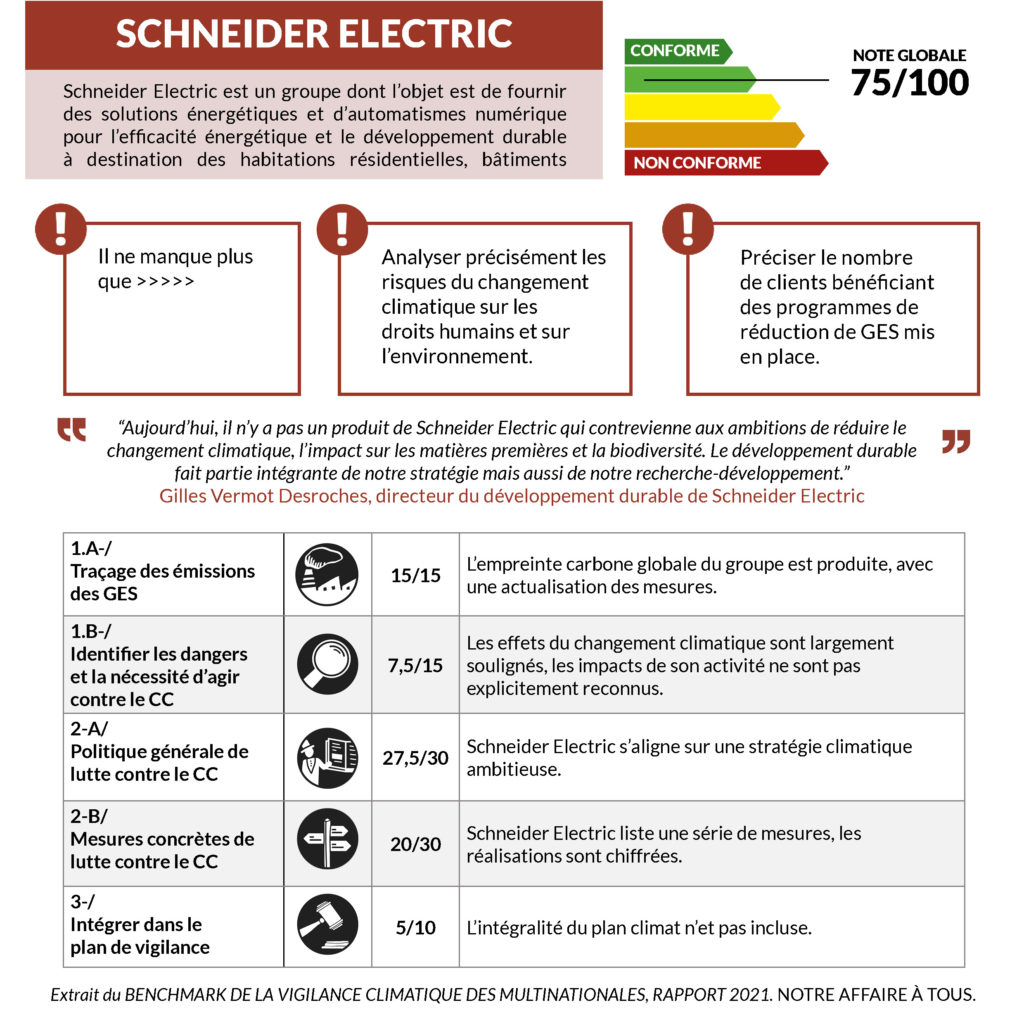 Schneider Electric se classe à la vingt-septième place de notre classement sur la vigilance climatique des multinationales françaises.