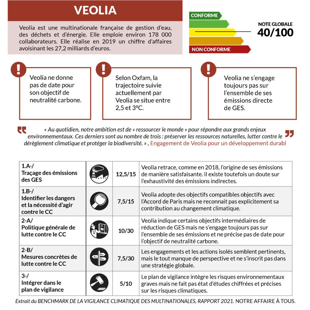 Veolia se classe à la douzième place de notre classement sur la vigilance climatique des multinationales françaises.