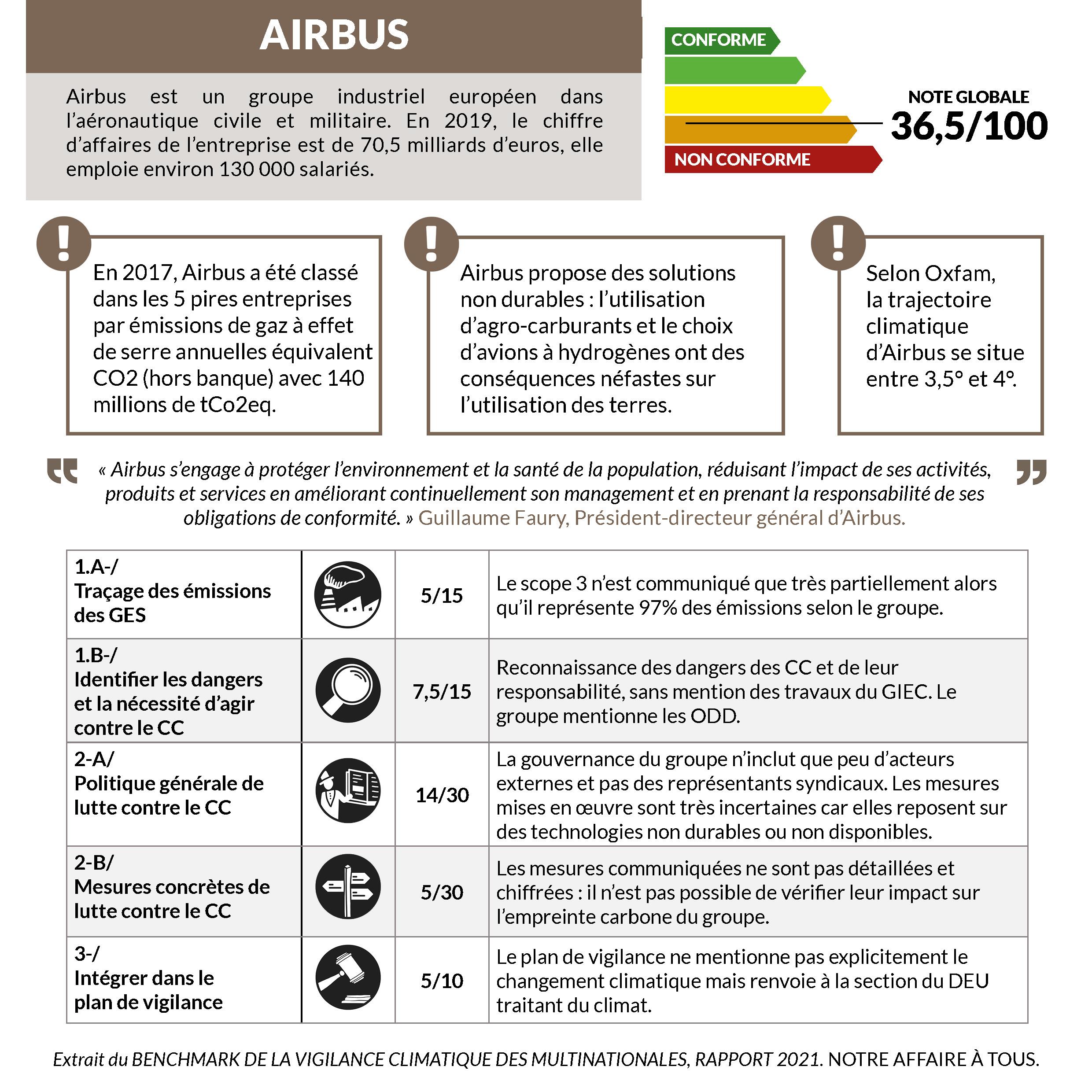 Airbus se classe à la sixième place de notre classement sur la vigilance climatique des multinationales françaises.
