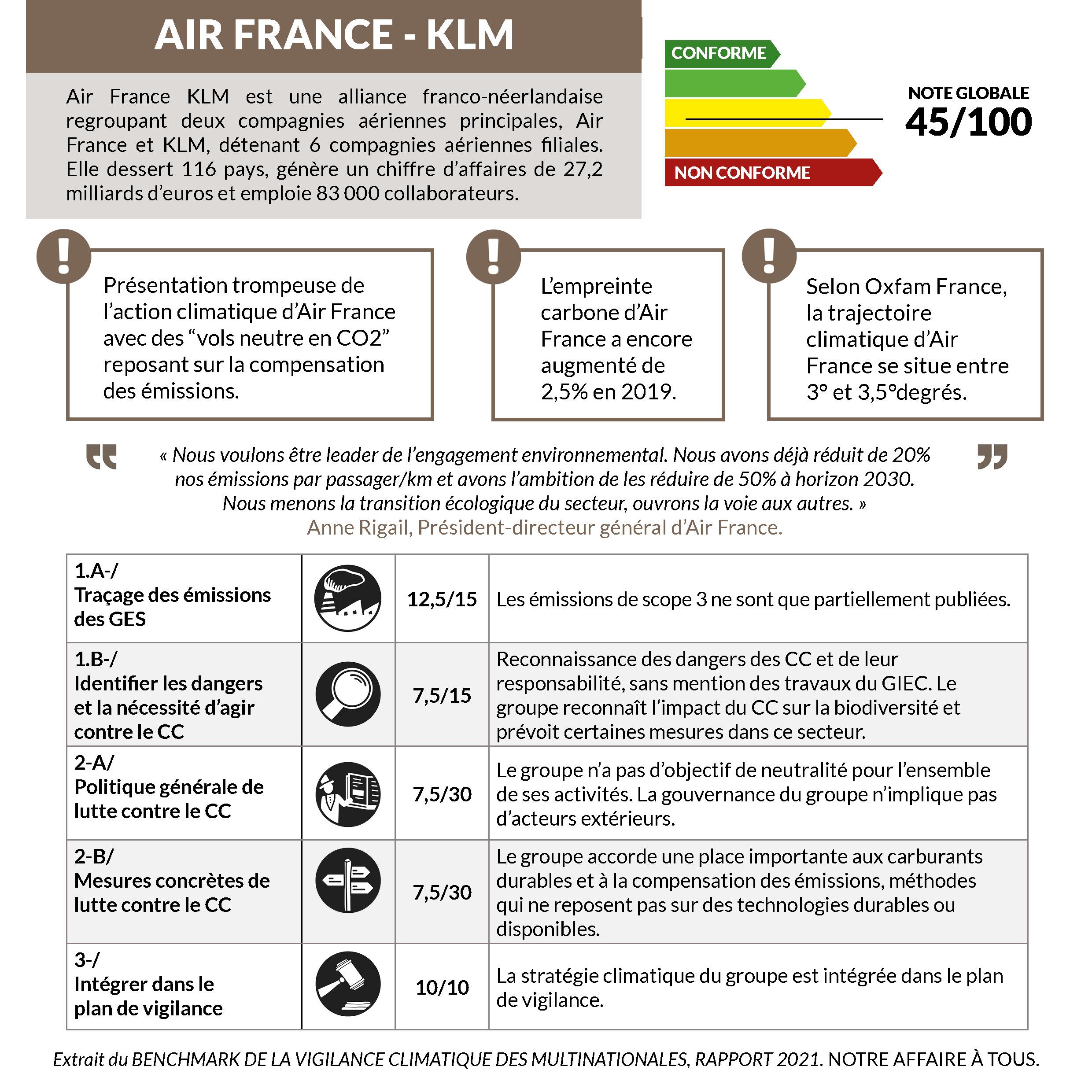 Air France – KLM se classe à la quinzième place de notre classement sur la vigilance climatique des multinationales françaises.
