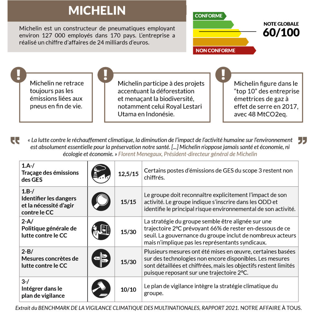 Michelin se classe à la vingt-quatrième place de notre classement sur la vigilance climatique des multinationales françaises.