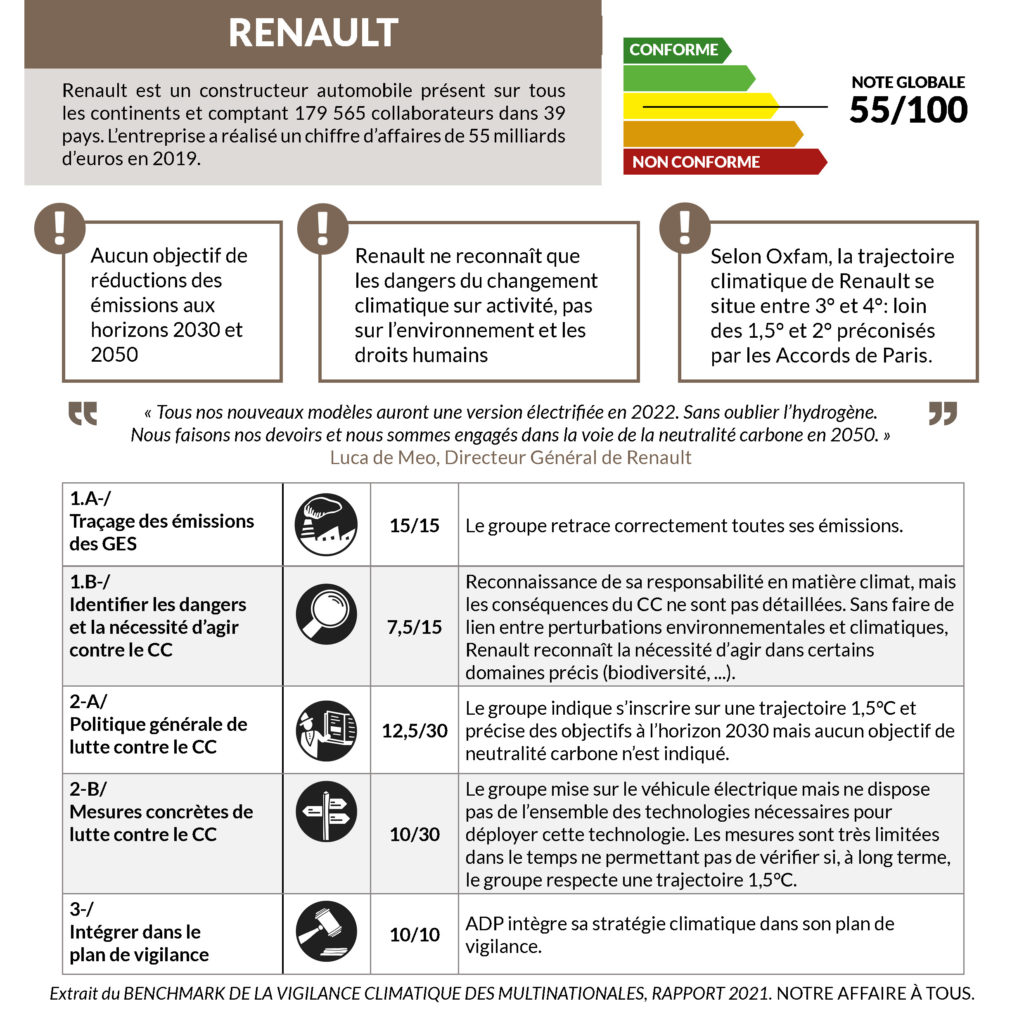Renault se classe à la vingtième place de notre classement sur la vigilance climatique des multinationales françaises.