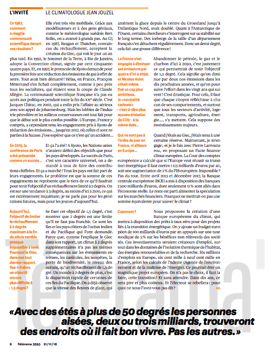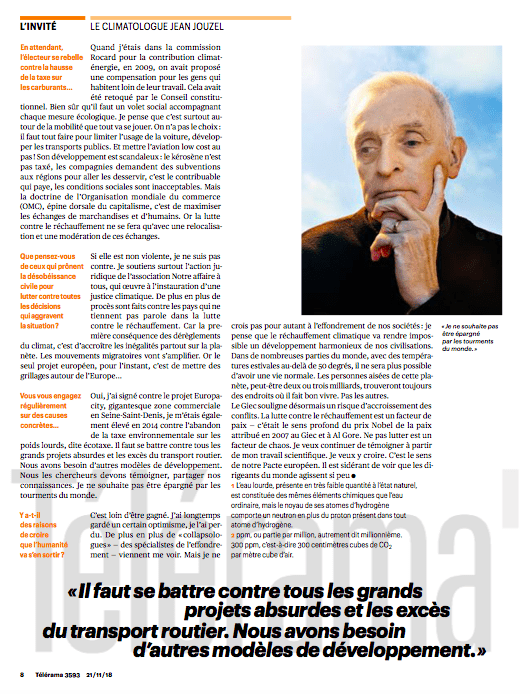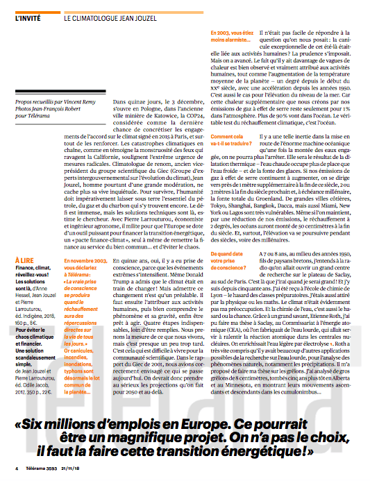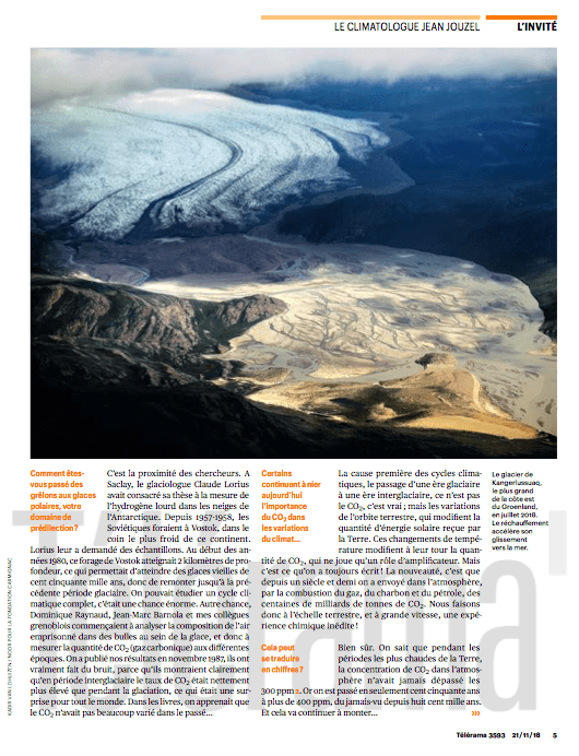 Notre président d’honneur, Jean Jouzel, a fait part de son inquiétude à Télérama, et explique son plan face à l’urgence climatique : une banque européenne pour financer la transition énergétique. « Six millions d’emplois en Europe, ça pourrait être un magnifique projet. On n’a pas le choix, il faut la faire cette transition écologique ».