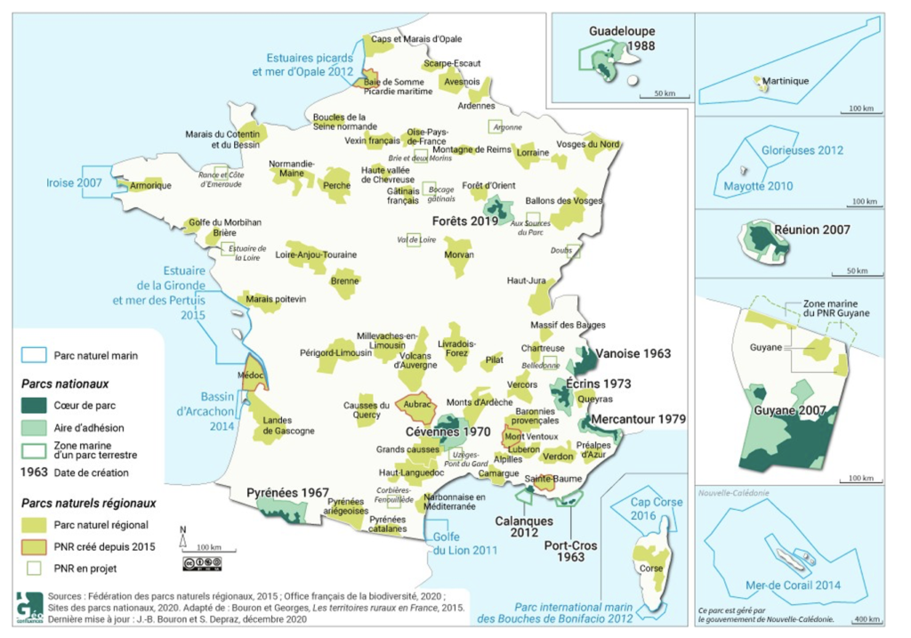 1 Contributions collectives – Chercheurs ENS Lyon. (2020, décembre). Parc national en France / parc naturel régional (PNR) — Géoconfluences. Géoconfluences.ENS-Lyon.fr. Consulté le 18 mars 2022,