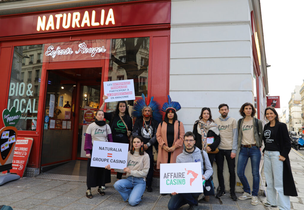 Communiqué de presse, Paris, le 18 mars 2024 – Ce samedi 16 mars, une mobilisation citoyenne a eu lieu entre 11h et 12h devant un magasin Naturalia à Paris, une enseigne du groupe Casino. Les représentant·e·s de peuples autochtones brésiliens Dinamam Tuxá, avocat et coordinateur exécutif de l’APIB et Eliane Bakairi, présidente de la FEPOIMT, ont pu dénoncer la déforestation et l’accaparement des terres en Amérique du Sud. Cette action a été organisée par les associations Envol Vert, Mighty Earth et Notre Affaire à Tous.