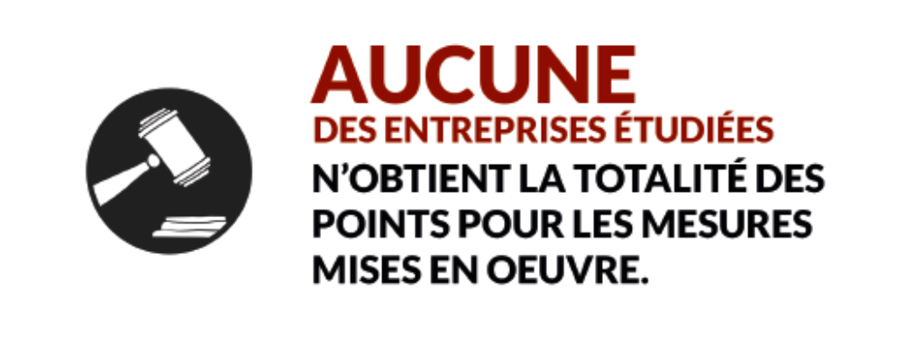 - Aucune entreprise n’obtient la totalité des points, alors qu’il s’agit de la seule note permettant de se prémunir de toute responsabilité.